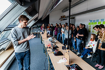 Das Projekt "Parallaxe – KI als Vermittlung im politischen Dialog" wird auf der Berlin Science Week 2025 im Naturkundemuseum gezeigt. Der erste Prototyp dieses Projekts entstand in einem Hauptprojekt im Wintersemester 24/25.